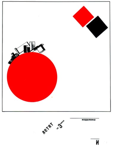 Veliki ruski umetnik El Lisicki u ilustraciji za dečju knjigu pod naslovom “Priča o dva kvadrata” oslanja se na eksperimente novije ruske avangarde i pozajmljuje crni kvadrat Kazimira Maljeviča. U priči, crni kvadrat se pridružuje crvenom kvadratu, koji predstavlja komunizam, i oni zajedno kreću na dijalektičko svemirsko putovanje. Dva ravna oblika udaraju u Zemlju, izazivajući razaranja u tri dimenzije – neka vrsta apstraktnog opisa Boljševičke revolucije – a rezultat je rađanje nove zemlje crvenog komunizma.